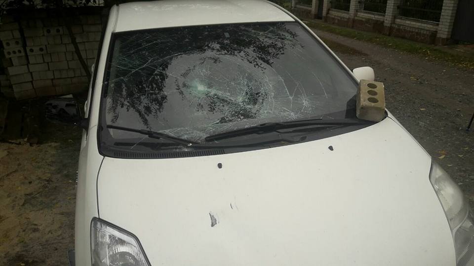 Под Киевом напали на журналиста и разбили стекло его машины кирпичом