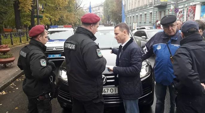 Во вторник, 17 октября, в центре Киева, в день большого митинга, полиция уже фиксирует нарушения. В частности, на углу улицы Грушевского и Крепостного переулка в правительственном квартале правоохранители заблокировали шесть машин автомайдановцев.