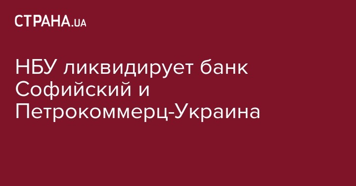Национальный банк Украины (НБУ) принял решение отозвать банковскую лицензию и ликвидировать банки "Софийский" и "Петрокоммерц-Украина", сообщается на веб-сайте НБУ.