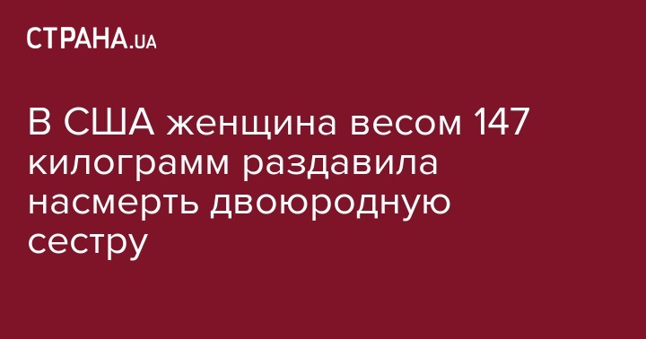 В США женщина весом 147 килограмм раздавила насмерть двоюродную сестру