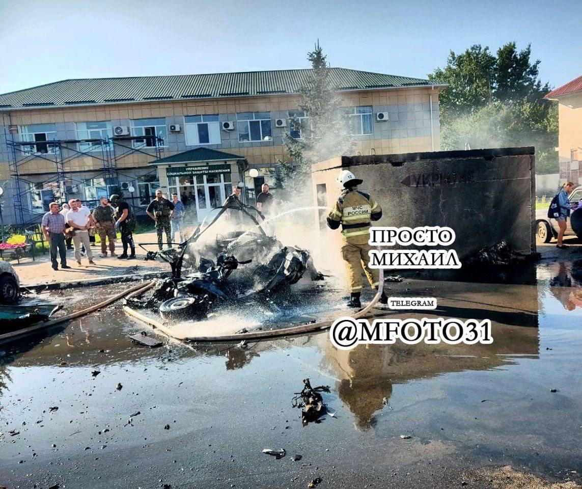 Повреждены административное здание и социальный объект. Сгорело авто.