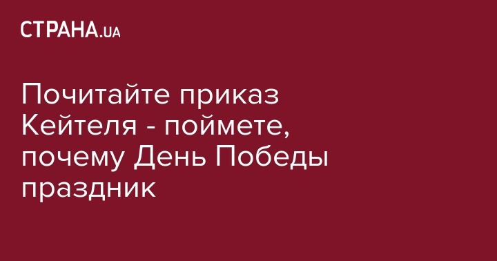 Почитайте приказ Кейтеля - поймете, почему День Победы праздник