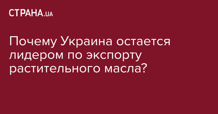 Украина сейчас мировой лидер по экспорту растительного масла.