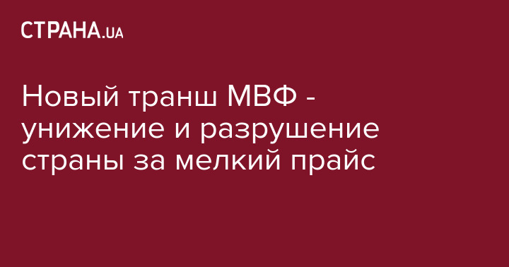 Новый транш МВФ: унижение и разрушение страны за мелкий прайс