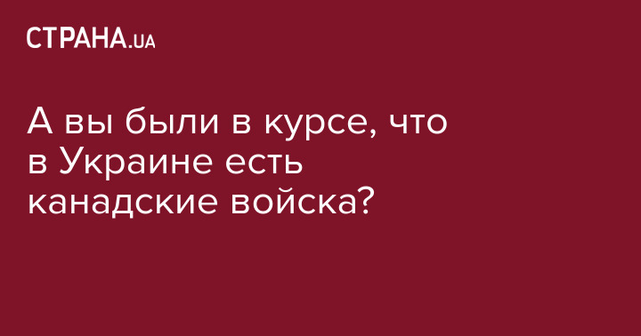 А вы были в курсе, что в Украине имеются канадские войска, да ещё в количестве, чтобы их можно было где-то дислоцировать и передислоцировать?