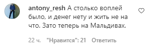 "А сколько воплей было. И денег нет, и жить не за что. Зато теперь на Мальдивах", - говорят подписчики.