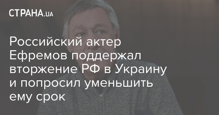 Скандальный российский актер Михаил Ефремов, которого осудили на 7,5 лет из-за спровоцированной им смертельной аварии в Москве, поддержал вторжение российской армии в Украину.