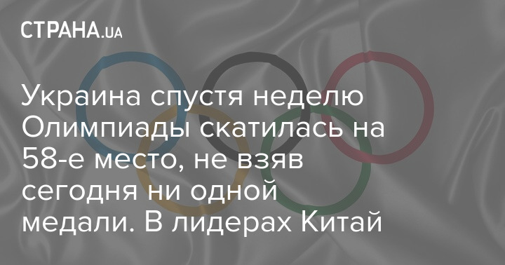 В пятницу, 30 июля, спустя неделю с начала Олимпийских игр в Токио, Украина опустилась еще на четыре места в медальном зачете - с 54-го на 58-е, не заработав сегодня ни одной медали. Лидерство продолжает удерживать Китай, за ним идут Япония и США.