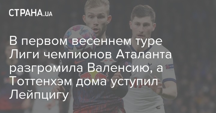 В первом весеннем туре Лиги чемпионов Аталанта разгромила Валенсию, а Тоттенхэм дома уступил Лейпцигу