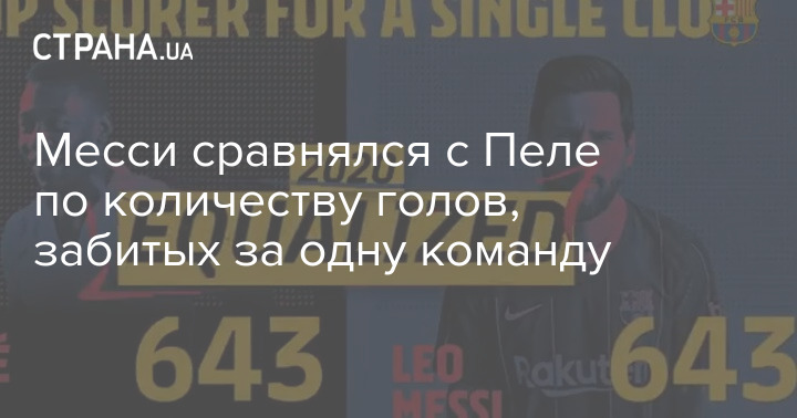 Нападающий "Барселоны" аргентинец Лионель Месси сравнялся со знаменитым бразильским футболистом Пеле в количестве голов, забитых за одну команду.