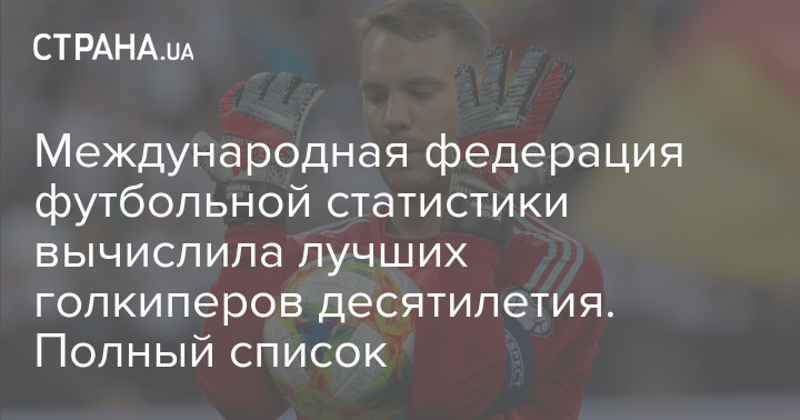 Международная федерация футбольной истории и статистики (IFFHS) представила рейтинг лучших вратарей мира за последние десять лет. Первое место занял Мануэль Нойер, который защищает цвета "Баварии" и Бундестима.