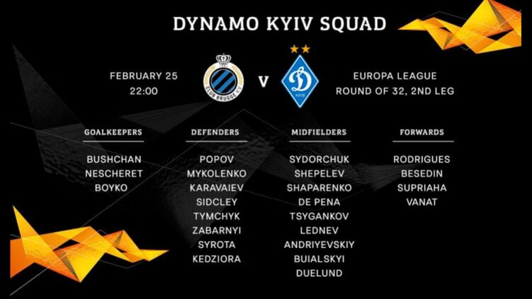 Напомним, что матч "Брюгге" - "Динамо" состоится в четверг, 25 февраля, начало - в 22:00 по киевскому времени.