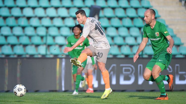 Нападающий "горняков" Жуниор Мораес оформил дубль на стадионе им. А. Бутовского на 42-й и 62-й минутах поединка.
