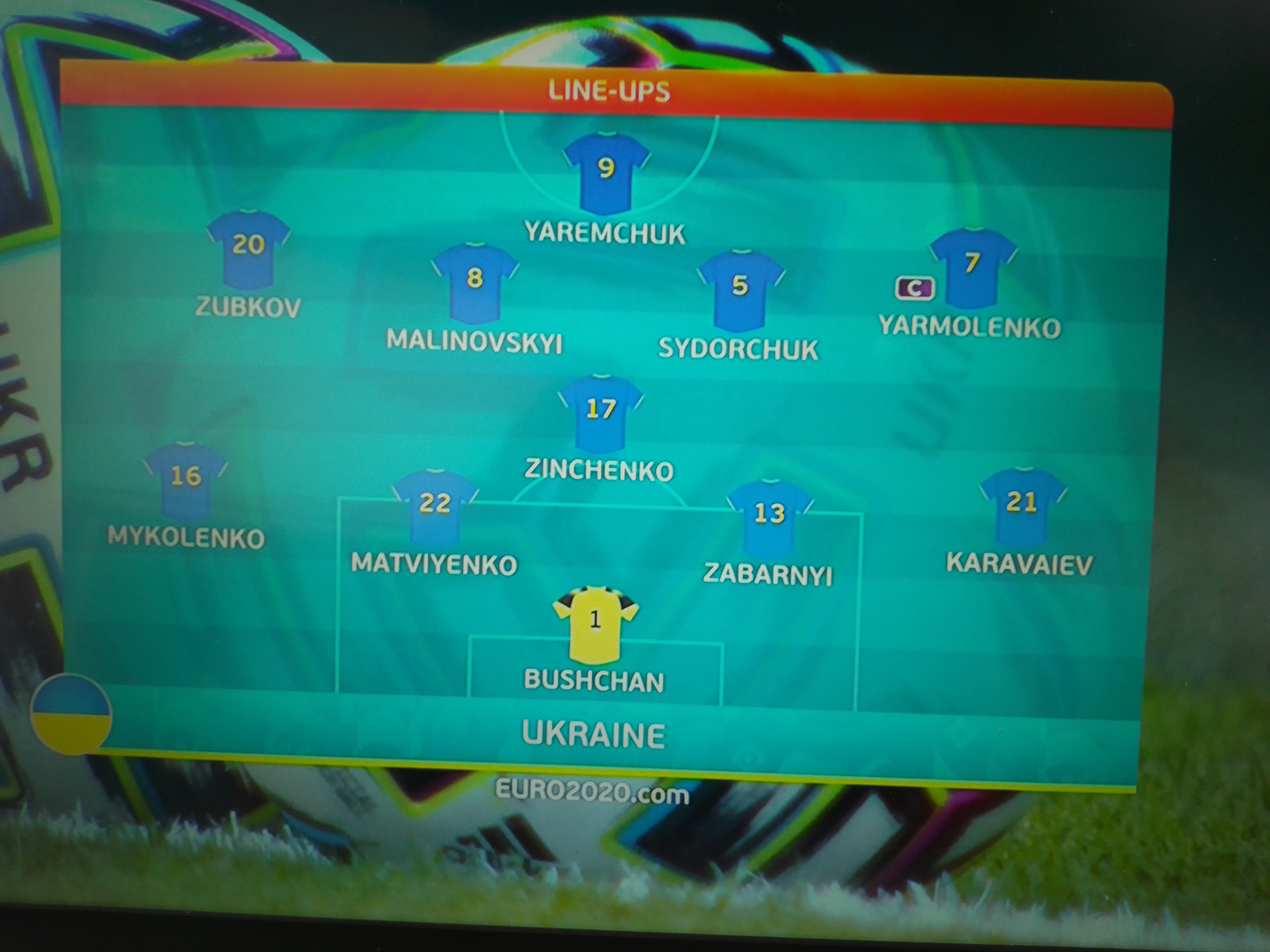 Украина: Бущан - защита - Караваев, Забарный, Матвиенко, Миколенко - полузащита - Малиновский, Сидорчук, Зинченко - атака Ярмоленко, Яремчук, Зубков.