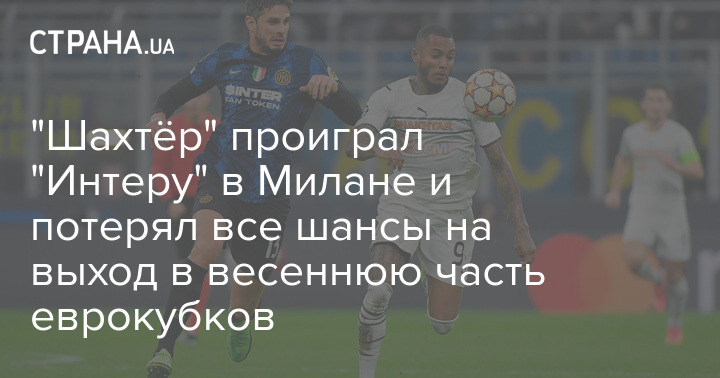 Донецкий "Шахтёр" проиграл в гостях миланскому "Интеру" и независимо от результатов других матчей в группе D, где выступают дончане, потерял все шансы на европейскую весну.