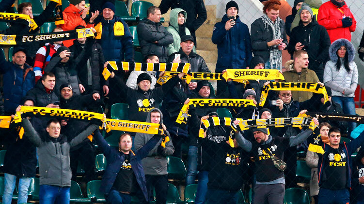 Футбольные болельщики молдавского "Шерифа" исполнили кричалку, переделанную из гимна Советского Союза перед матчем с донецким "Шахтером" на НСК "Олимпийский" в Киеве.
