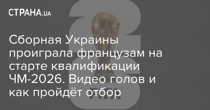 Сборная Украины по футболу уступила национальной команде Франции в стартовом матче в отборе к чемпионату мира 2026 года со счетом 0:2.