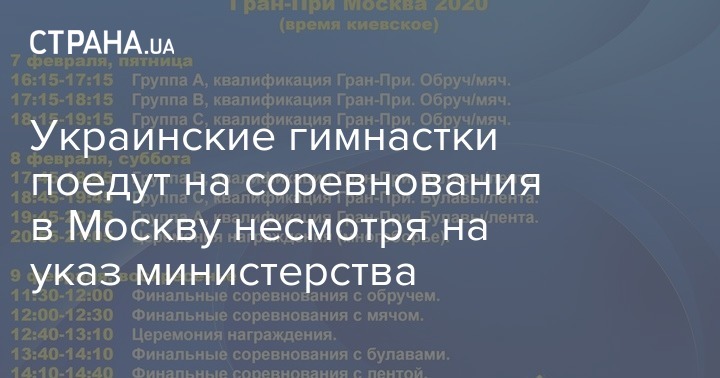 "Тренерским штабом сборной Украины было принято решение об участии наших спортсменок Мелещук Евы и Пограничной Кристины в Гран-при по художественной гимнастике, Москва, 7-9 февраля 2020 года. Пожелаем нашим девочкам удачи!" - говорится в сообщении.