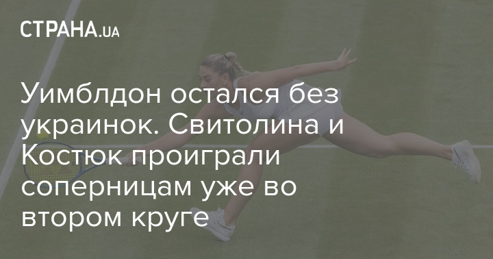 Во втором круге престижного турнира Уимблдон, который проходит на травяных кортах в Великобритании, украинские теннисистки Элина Свитолина и Марта Костюк проиграли своим соперницам и выбыли из состязаний. Первая не одолела спортсменку из Польши Магду Линетт, вторая - латвийку Анастасию Севастову.