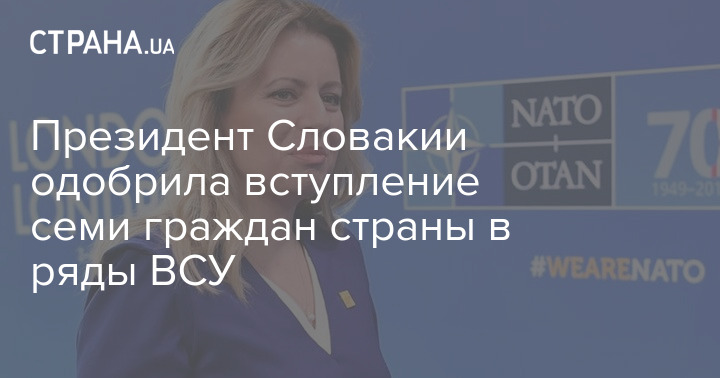 Президент Словаччини Зузана Чапутова схвалила участь сімох громадян країни у лавах Збройних Сил України.