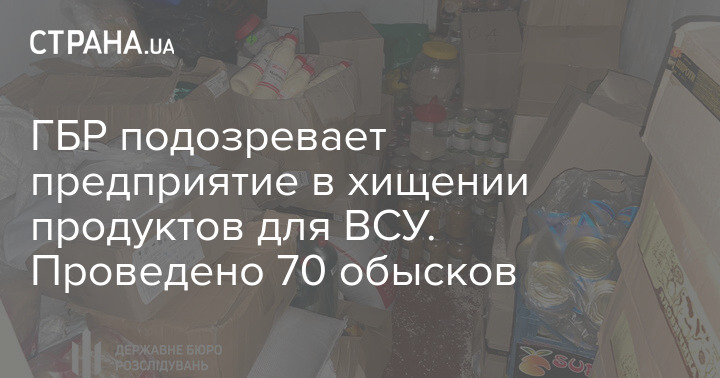 Державне бюро розслідувань висунула підозру в розкраданні продуктів для ЗСУ щодо неназваного підприємства. Силовики провели 70 обшуків та вилучили 7 тонн продукції.