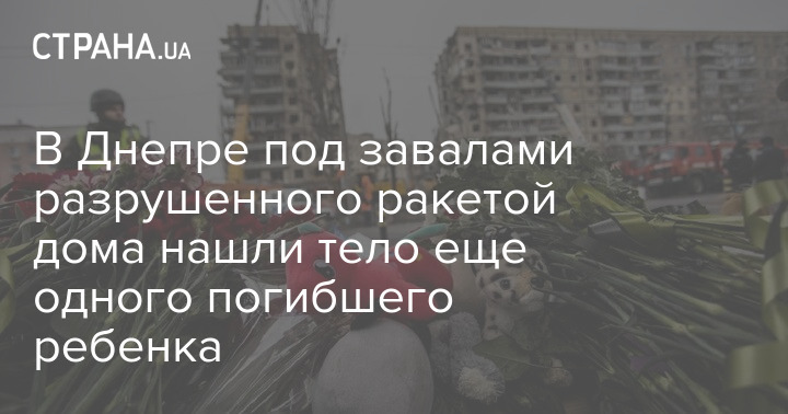 У Дніпрі з-під завалів будинку вранці 17 січня витягли тіло ще однієї загиблої дитини. Таким чином, кількість загиблих дітей після ракетної атаки 14 січня досягла чотирьох. А загалом жертв - 41.