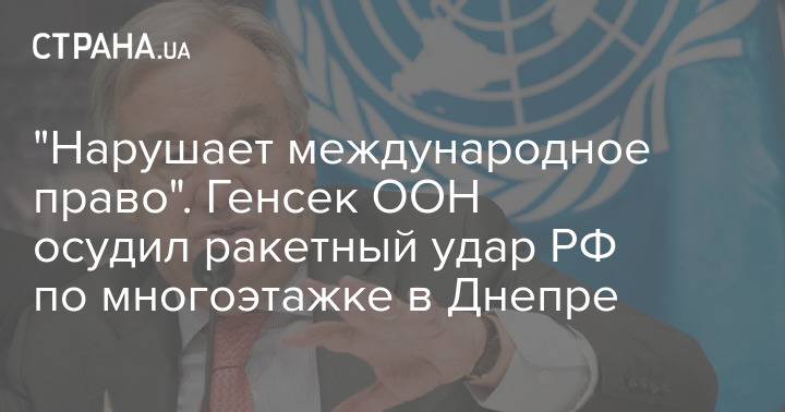Генсек ООН Антоніу Гутерріш рішуче засудив російський ракетний удар по житловому будинку в Дніпрі, внаслідок якого загинули щонайменше 44 особи.