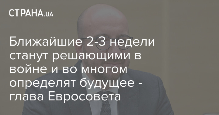 Глава Євроради Шарль Мішель заявив, що найближчі 2-3 тижні стануть вирішальними у війні в Україні, і що вони багато в чому визначать наше майбутнє.