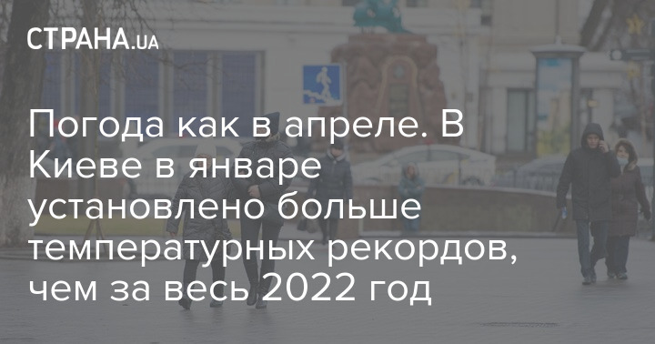 За даними синоптиків, у п'ятницю, 20 січня вперше за 143 роки спостережень середньодобова температура повітря склала 7,3 градуса тепла, що на 2,4 градуса вище за рекордне значення температури для цього дня 1952 року.