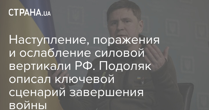 Радник голови Офісу президента України Михайло Подоляк описав ключовий, за його оцінками, сценарій завершення війни в Україні.