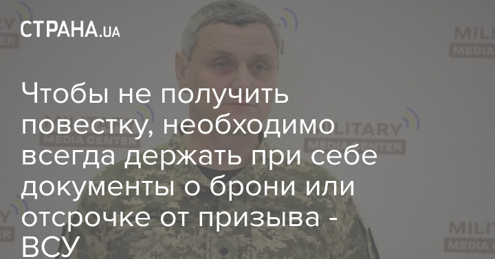 У Збройних Силах України розповіли, що необхідно завжди тримати при собі документи про броню чи відстрочку від призову, щоб не отримати повістку.