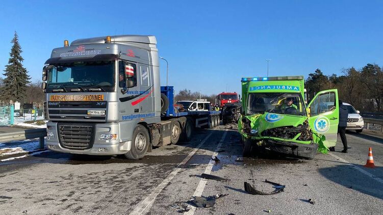Сьогодні, 8 лютого, у Київській області на трасі Київ – Чоп сталася масштабна ДТП за участю фури та машини швидкої допомоги. Через аварію рух транспорту у бік Житомира утруднений.