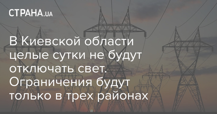 У Київській області цілодобово не відключатимуть світло. Обмеження будуть лише у трьох районах