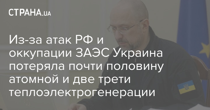 Внаслідок російських ракетних та дронових атак та окупації Запорізької АЕС Україна втратила 44% атомної генерації та три чверті потужностей теплоелектростанцій.