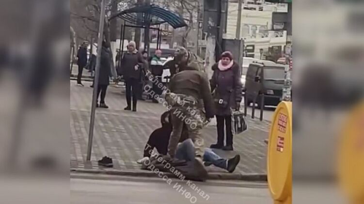В Одесі військові жорстко поклали чоловіка на землю. Скріншот відео