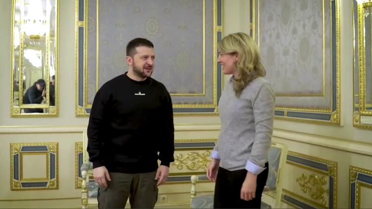 Сьогодні, 14 лютого, президент України Володимир Зеленський провів зустріч із міністром закордонних справ Канади Мелані Жолі під час її візиту до Києва. Сторони обговорили подальшу взаємодію у сфері безпеки та оборони та нинішні потреби ЗСУ.