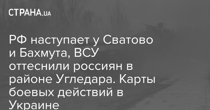 Американський Інститут вивчення війни (США) опублікував актуальні мапи бойових дій в Україні. Повідомляється, що росіяни продовжували наступати в районі Сватового та Бахмуту на Донбасі.