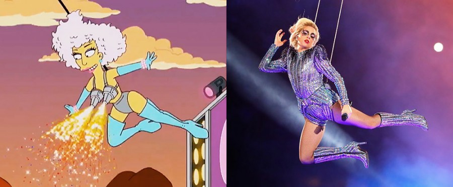 В одній із серій показали, як Леді Гага виступила на тросах у перерві фінальної гри Національної футбольної ліги (НФЛ), вона ж Супербоул.