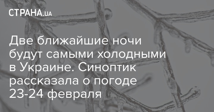 За її словами, дві найближчі ночі будуть в Україні найхолоднішими. А з 25 лютого потеплішає, зазначила Діденко.