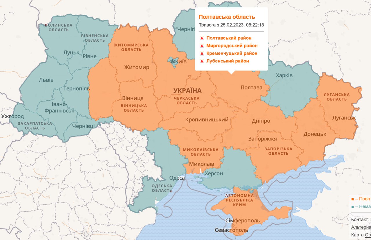 15.58 Тривога на більшій частині України.