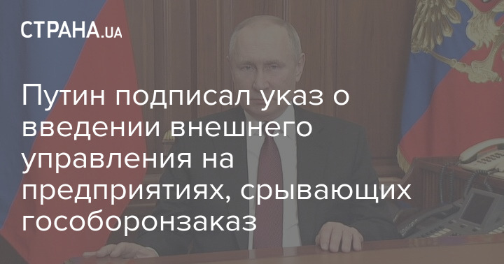 У п'ятницю, 3 березня, президент РФ Володимир Путін підписав указ про введення зовнішнього управління на підприємствах, які "зривають держоборонзамовлення в умовах військового стану".