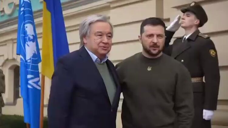 Президент України Володимир Зеленський опублікував відео зустрічі з генсеком Організації Об'єднаних Націй (ООН) Антоніо Гутеррішем та делегацією ООН у Києві.