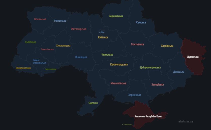 09.50 Повітряна тривога оголошена на півночі та сході.