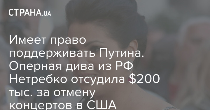 Російська оперна співачка Ганна Нетребко добилася в американському суді виплати від бродвейського театру "Метрополітен-опера" 200 тисяч доларів за відміну її виступів після початку російського вторгнення в Україну.