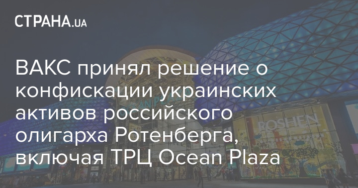 ВАКС ухвалив рішення конфіскувати українські активи російського олігарха Аркадія Ротенберга, зокрема ТРЦ Ocean Plaza.