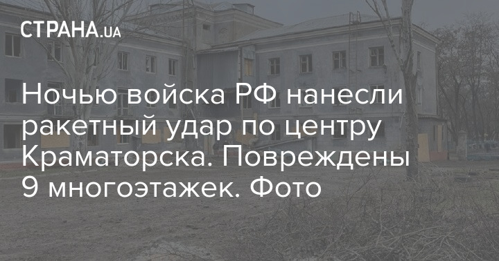 "Ворог вночі вдарив ракетою по центру Краматорська - пошкоджено 9 багатоповерхівок. За попередньою інформацією, обійшлося без постраждалих. Займаємось ліквідацією наслідків", - повідомив Гончаренко.