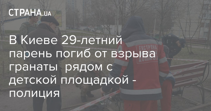 У Києві сьогодні вранці поряд із дитячим майданчиком 29-річний хлопець загинув від вибуху гранати. Інцидент стався на Квітневому провулку, граната вибухнула в його руках.