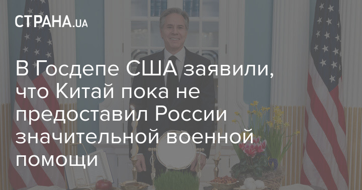 У Держдепі США заявили, що Китай поки не надав Росії значної військової допомоги