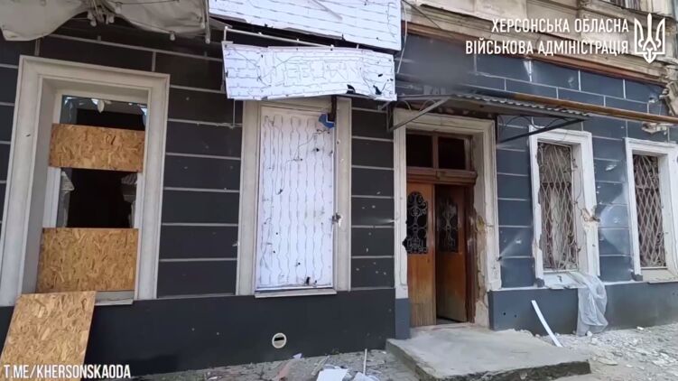 Про це повідомляє голова Херсонської ОВА Олександр Прокудін та публікує відео наслідків.