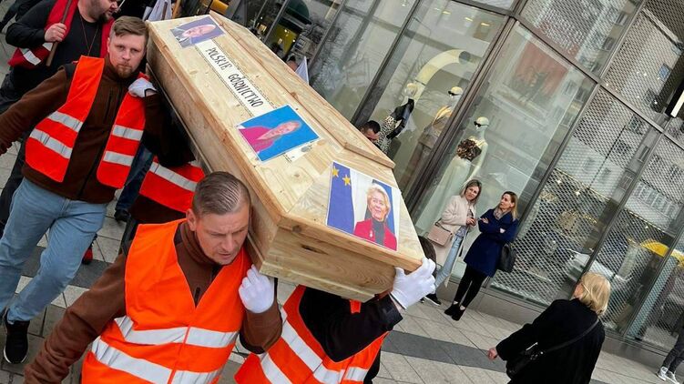 Польські шахтарі, обурені директивою Європейського Союзу, спрямованою на скорочення викидів метану, влаштували протест перед офісом ЄС у Варшаві, заявивши, що документ позбавить їх роботи. Вони принесли до офісу труну з портретами Грети Тунберг та Урсули фон дер Ляйєн.